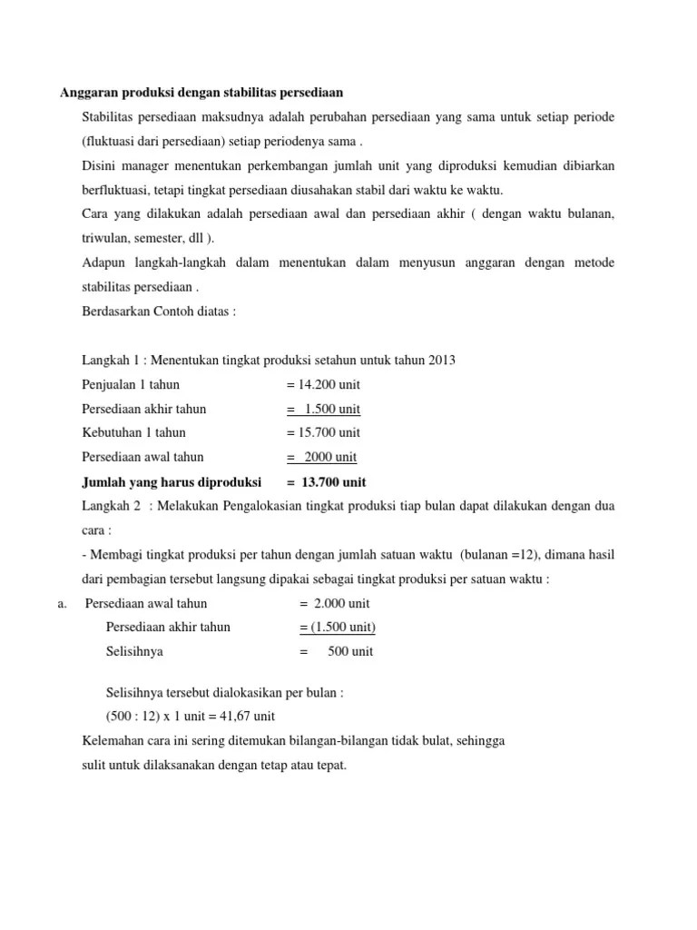 Baku tak langsu akan direncanakan dalam anggaran biaya overhed pabrik. Penganggaran penyusunan anggaran persediaan disusun oleh : Persediaan besi (safety stock) adalah persediaan minimal bahan baku yang harus dipertahankan untuk menjamin kelangsungan proses produksi. Wirmie eka putra, s.e., m.si. Anggaran persediaananggaran persediaan merupakan anggaran yang merencanakan secara terperinci berapa nilai persediaan pada periode yang akan dating.