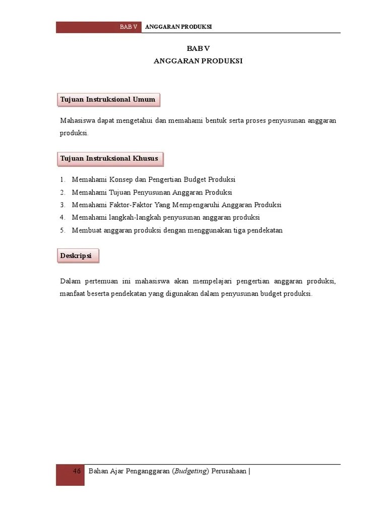 02/08/2017 · anggaran produksi ini merupakan dasar dari pembuatan anggaran biaya produksi, seperti: